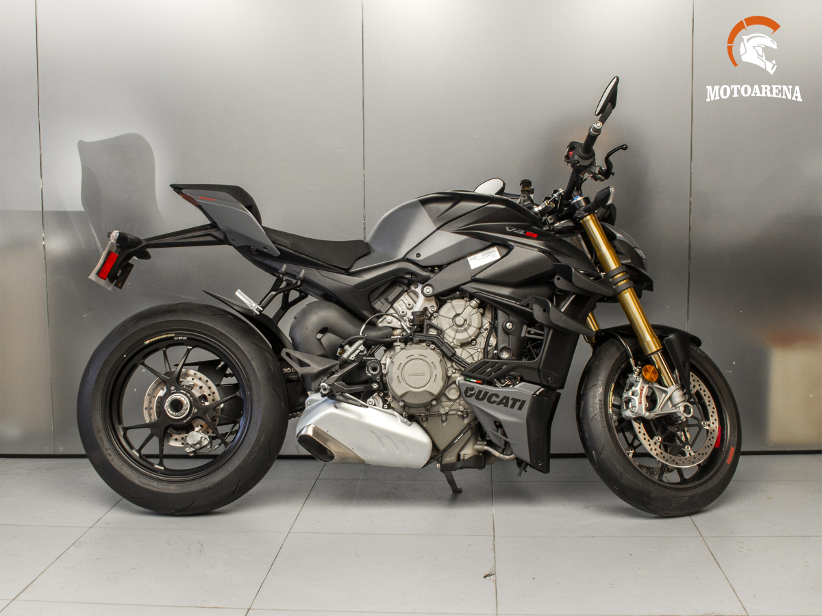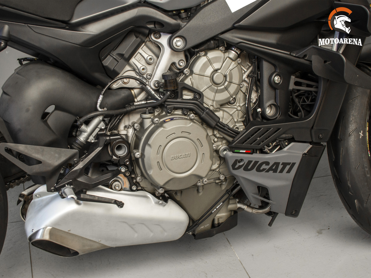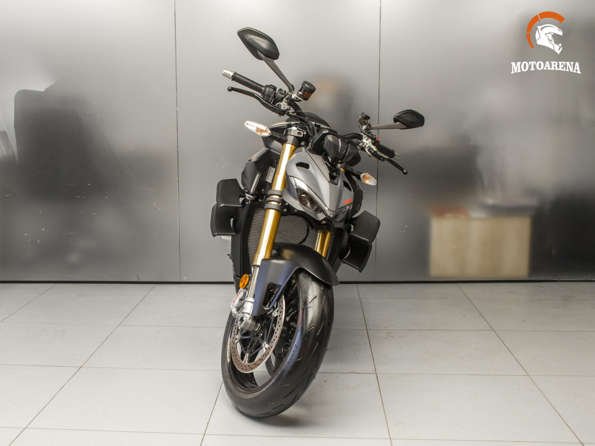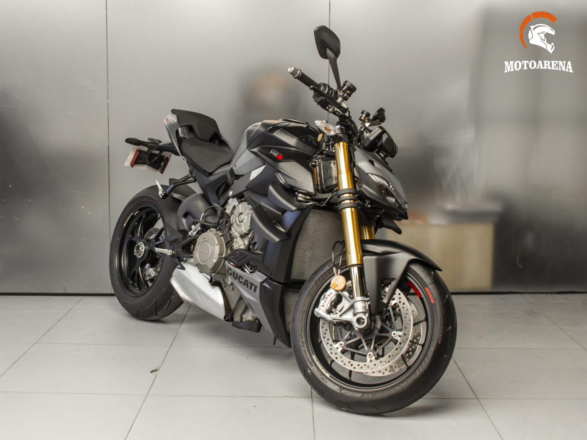 Ducati Streetfighter V4 S 2024 года представляет собой экстремальный гипернейкед, построенный на базе супербайка Panigale V4 и воплощающий концепцию «формулы борьбы»: высокий и широкий руль, отсутствие обтекателей и впечатляющая мощность. Сердцем мотоцикла является 1103-кубовый двигатель Desmosedici Stradale V4, выдающий 208 л.с. и 123 Нм крутящего момента, что обеспечивает динамику на уровне гоночных треков при сохранении гражданской управляемости. Версия «S» отличается использованием полуактивной электронной подвески Öhlins Smart EC 2.0, облегченных кованых колес Marchesini и литий-ионного аккумулятора, что снижает вес и оттачивает маневренность. Безопасность и контроль обеспечиваются передовым пакетом электроники, включая угловую ABS Bosch, трекшн-контроль, систему предотвращения вилли и двусторонний квикшифтер, а характерные аэродинамические «крылья-бипланы» создают прижимную силу для стабильности на высоких скоростях.