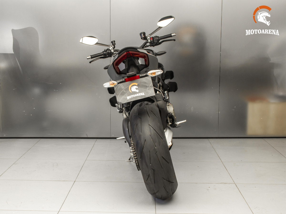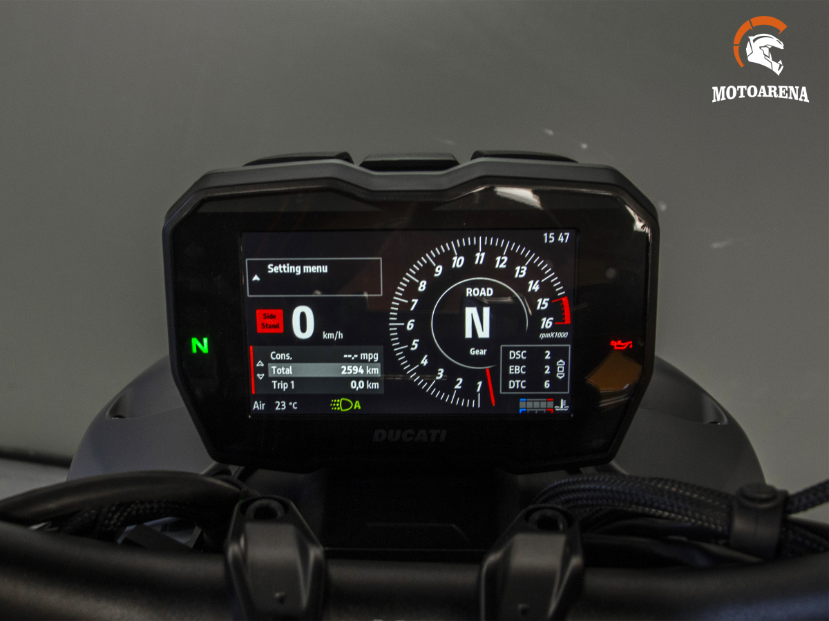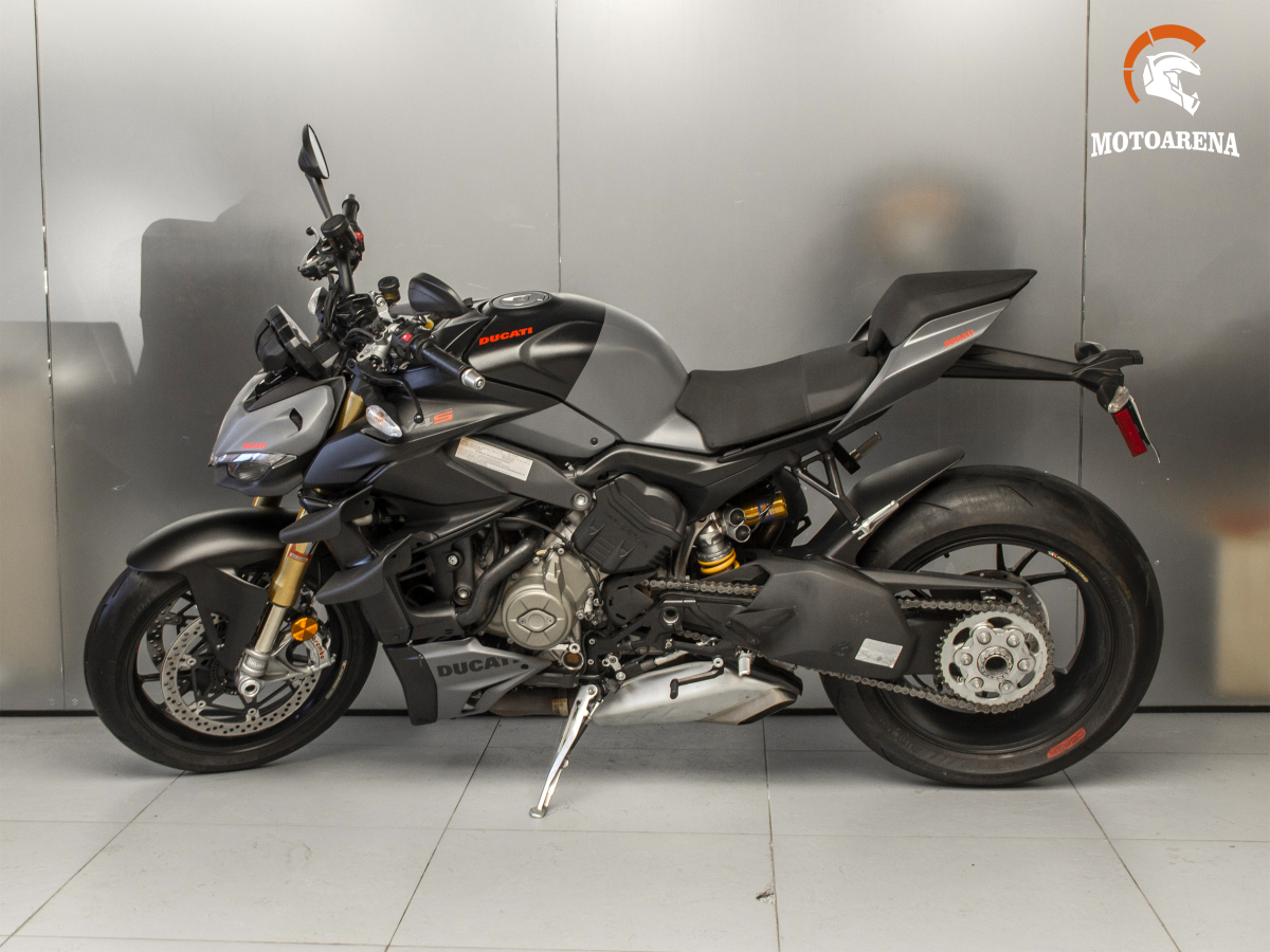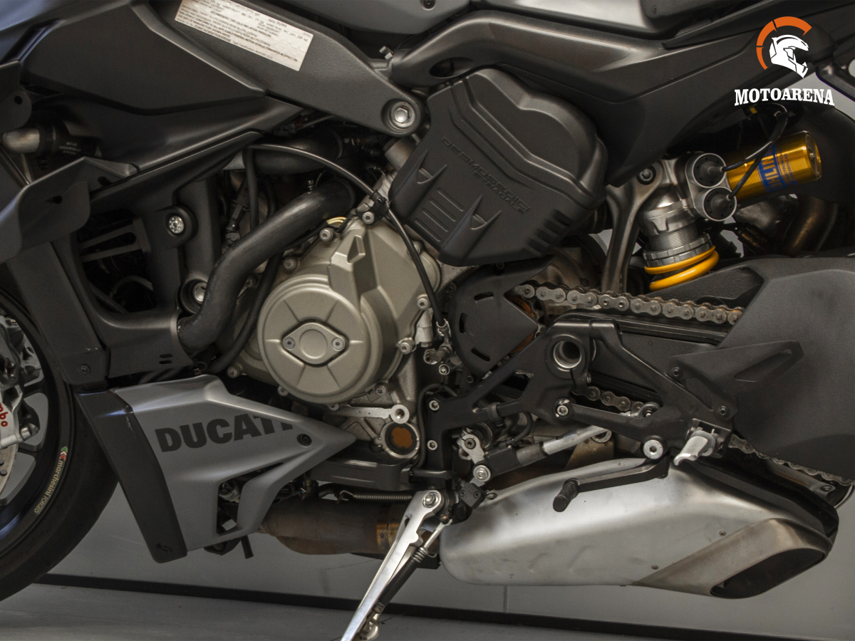 Ducati Streetfighter V4 S 2024 года представляет собой экстремальный гипернейкед, построенный на базе супербайка Panigale V4 и воплощающий концепцию «формулы борьбы»: высокий и широкий руль, отсутствие обтекателей и впечатляющая мощность. Сердцем мотоцикла является 1103-кубовый двигатель Desmosedici Stradale V4, выдающий 208 л.с. и 123 Нм крутящего момента, что обеспечивает динамику на уровне гоночных треков при сохранении гражданской управляемости. Версия «S» отличается использованием полуактивной электронной подвески Öhlins Smart EC 2.0, облегченных кованых колес Marchesini и литий-ионного аккумулятора, что снижает вес и оттачивает маневренность. Безопасность и контроль обеспечиваются передовым пакетом электроники, включая угловую ABS Bosch, трекшн-контроль, систему предотвращения вилли и двусторонний квикшифтер, а характерные аэродинамические «крылья-бипланы» создают прижимную силу для стабильности на высоких скоростях.