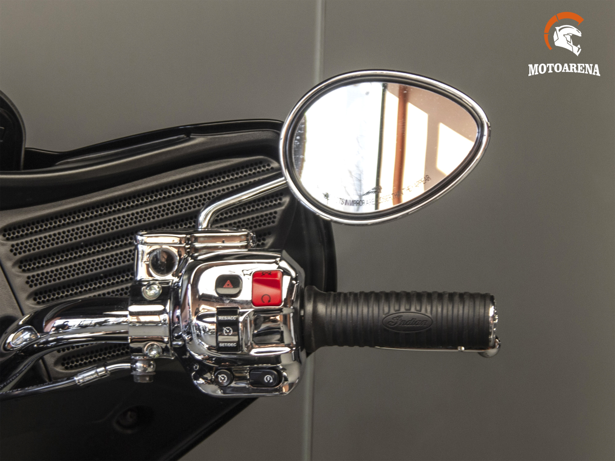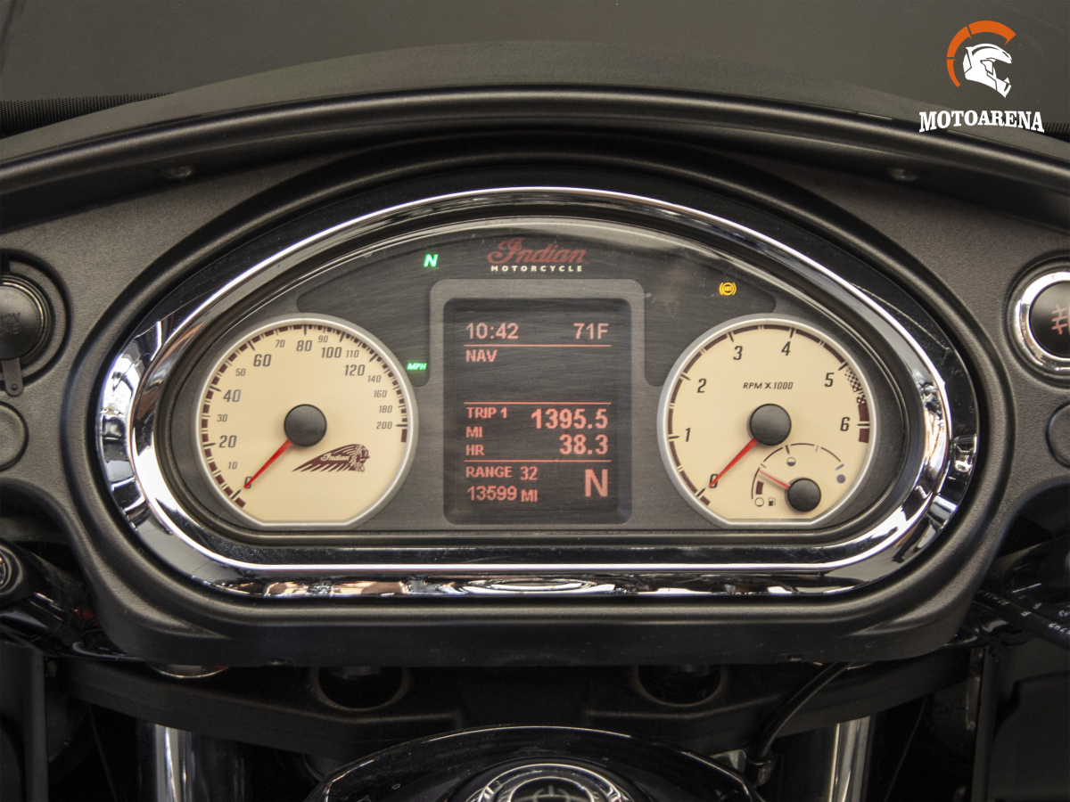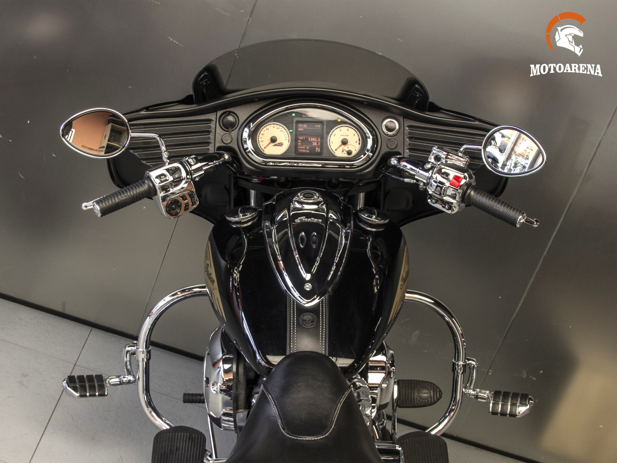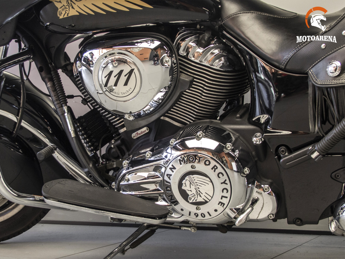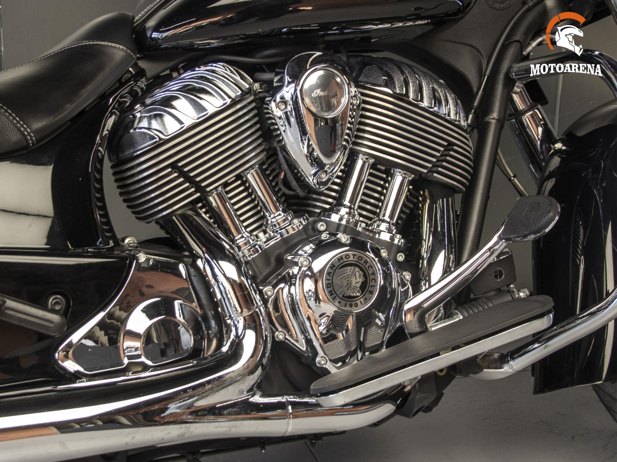 Главным преимуществом модели является уникальное сочетание ретро-дизайна (фирменные глубокие крылья, обтекатель «летучая мышь» и обилие хрома) с технологичностью: мотоцикл оснащен системой бесключевого доступа, круиз-контролем, мощной аудиосистемой и электрической регулировкой лобового стекла. Алюминиевая рама обеспечивает Chieftain удивительную для такого веса управляемость и стабильность на трассе, а эффективные тормоза с ABS позволяют контролировать массу в 385 кг. Это надежный, комфортный и харизматичный турер, который не только дарит удовольствие от дальних поездок, но и гарантированно притягивает взгляды в любом городе.