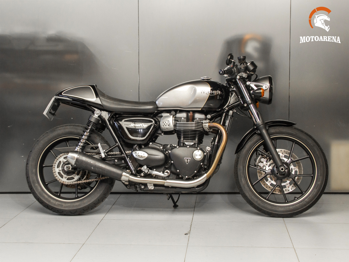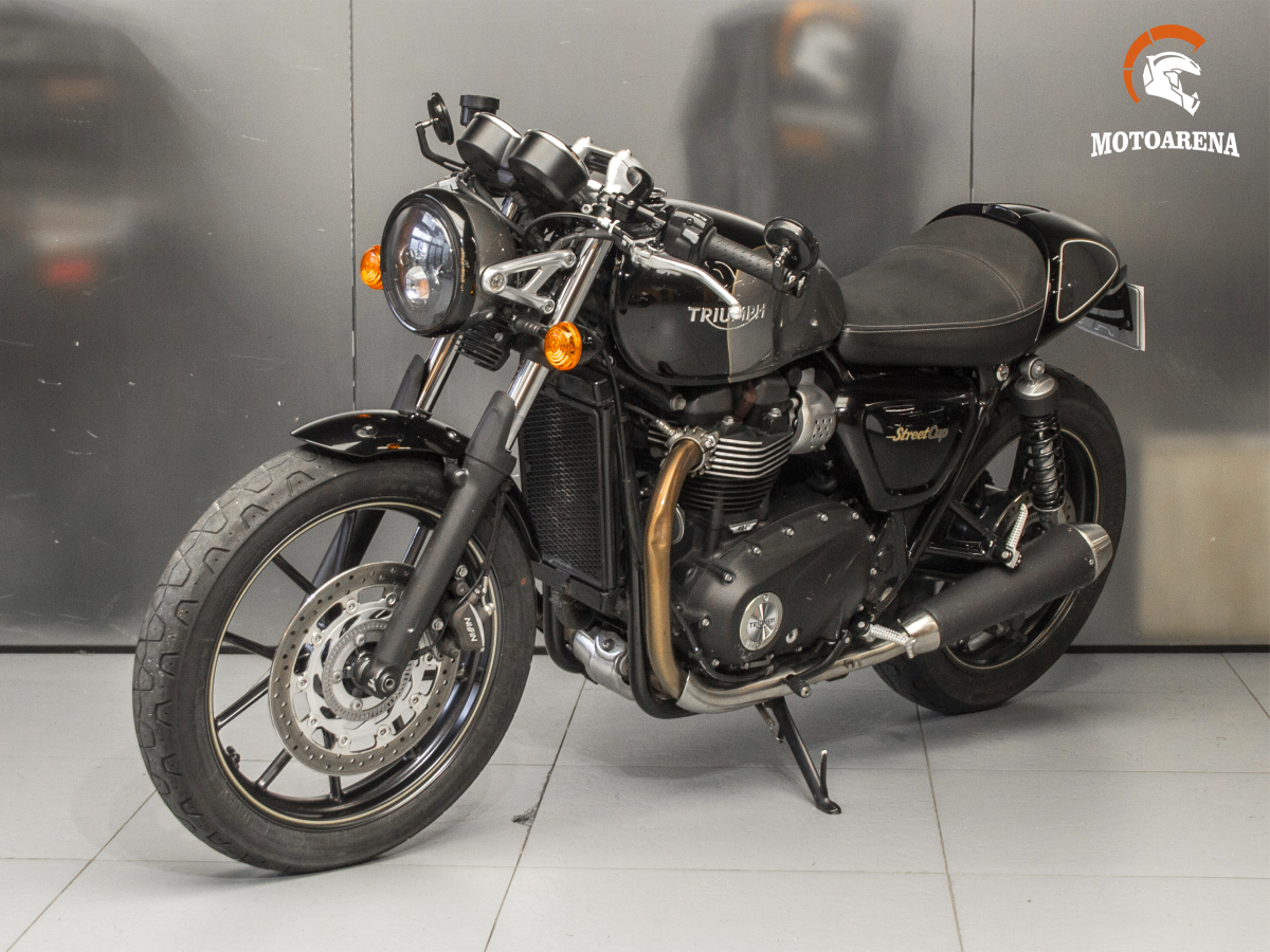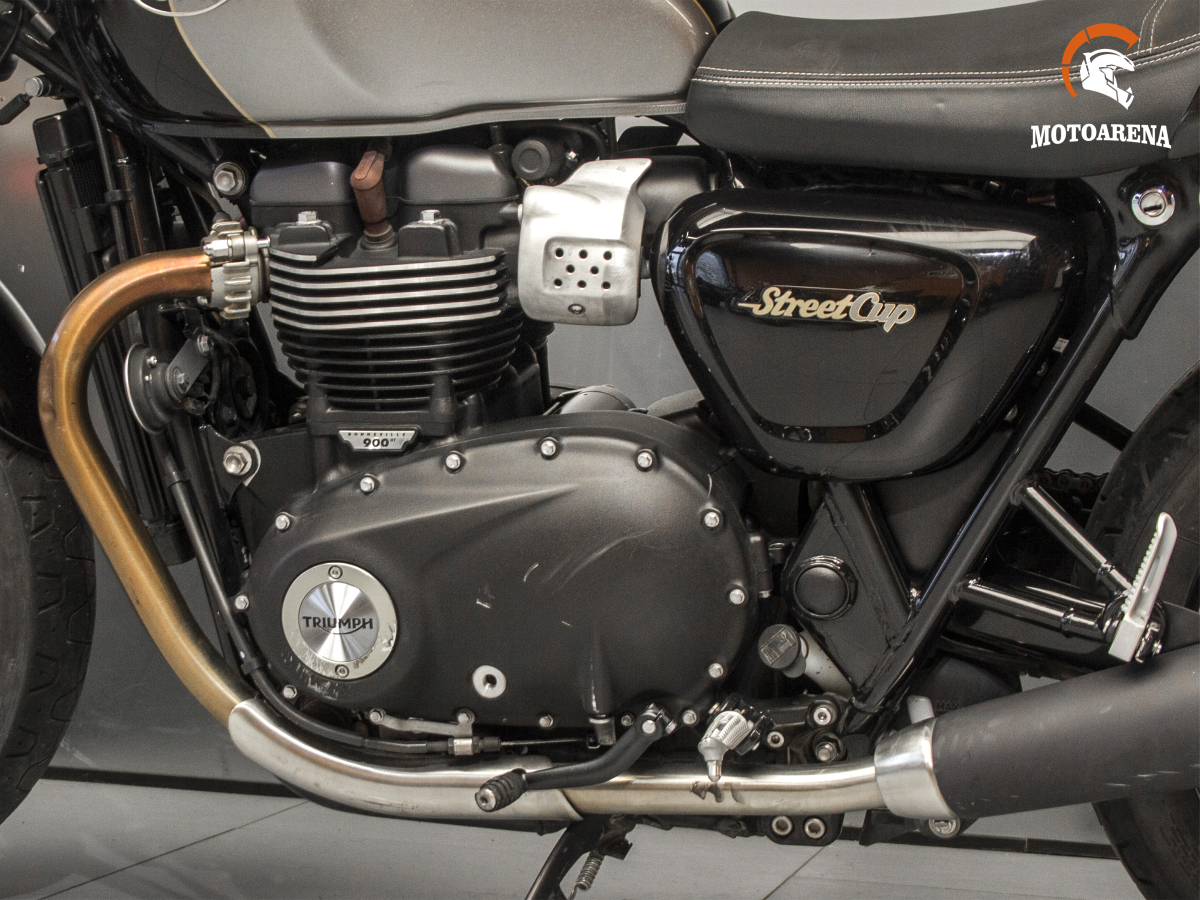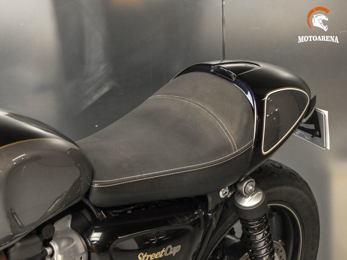 Triumph Street Cup — это стильный британский каферейсер в духе «современной классики», построенный на базе 900-кубового параллельного твина с жидкостным охлаждением. Модель выделяется спортивной посадкой за счет низкого руля, наличием ветрового стекла и съемного колпака на пассажирское сиденье. Несмотря на ретро-дизайн, байк технологичен: он оснащен электронным газом, системами ABS и трекшн-контроля, а также проскальзывающим сцеплением для легкого управления. Это маневренный городской мотоцикл с тяговитым мотором, который сочетает в себе эстетику 60-х годов и надежность современных систем безопасности.