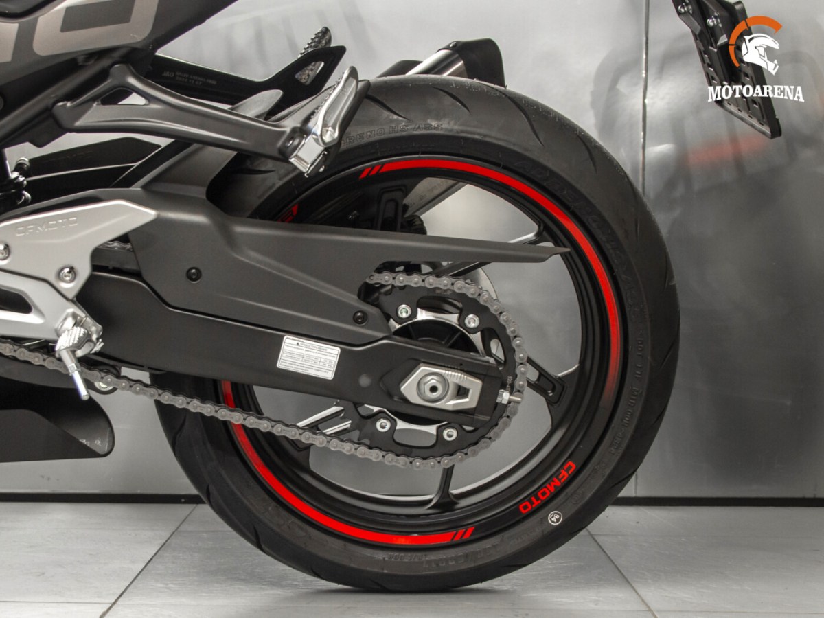 Мотоцикл довольно легкий: его сухая масса всего 161 кг. Небольшой вес в совокупности с уменьшенными размерами делают CFMOTO 450SR более быстрым и динамичным – модель развивает скорость до 180 км/час и разгоняется до 100 км/ч менее, чем за 5 секунд, что сравнимо уже с 600-кубовыми мотоциклами. За безопасность отвечают цепкие тормоза Brembo и ABS. Система препятствует блокировке колес в случаях экстренного торможения.