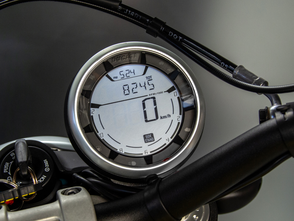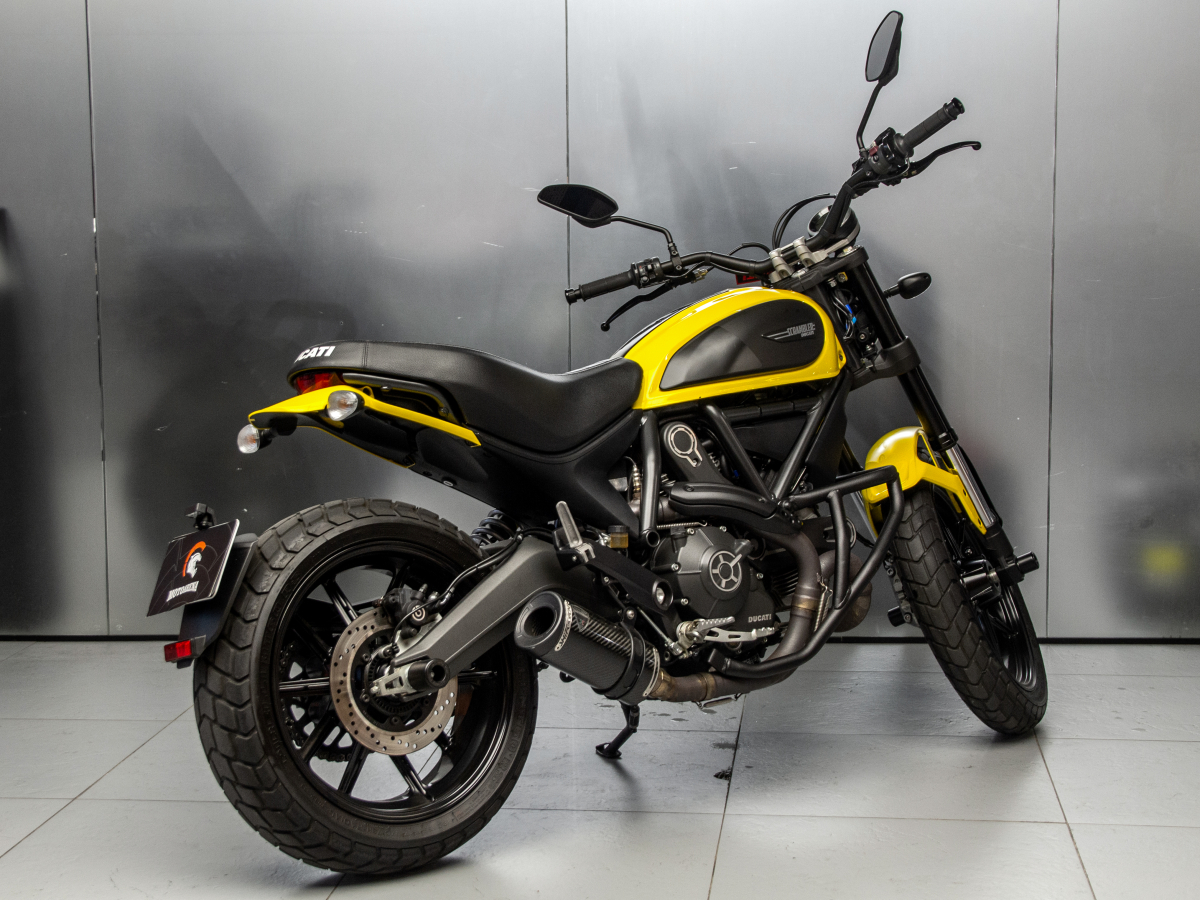 Scrambler получил алюминиевую раму, 18-дюймовое переднее и 17-дюймовое заднее колесо, дисковые тормоза с ABS, а также моноамортизатор с регулировкой преднатяга. Эргономика продумана: высокая посадка, широкое рулевое управление и комфортное сиденье.