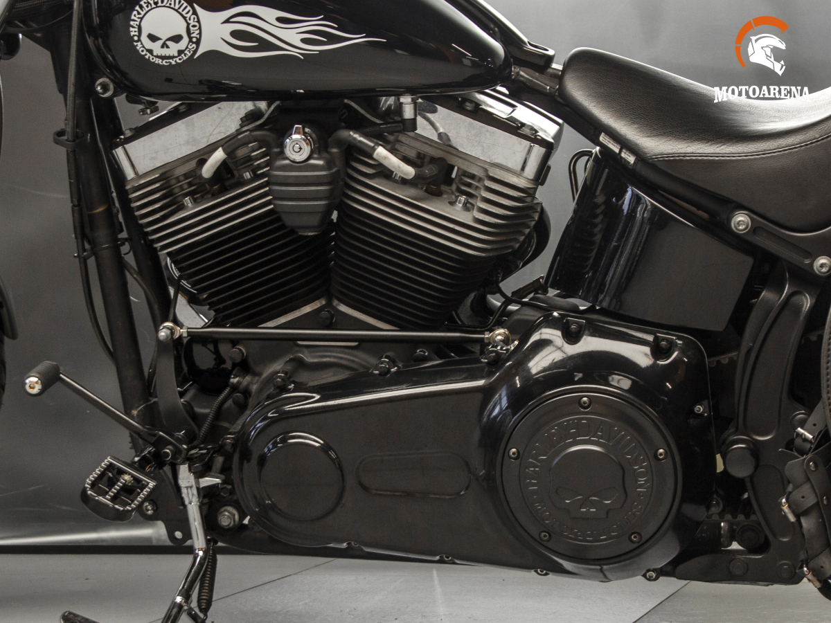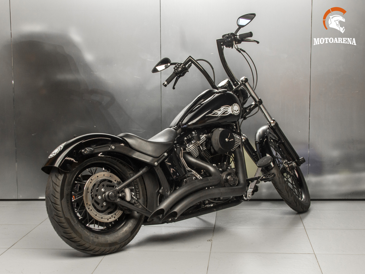 FXS Blackline отличается заниженной посадкой, узким топливным баком, минималистичной приборной панелью и чёрной окраской с хромированными акцентами. Передняя вилка — длинная и вытянутая, подчёркивает стиль «чоппер», а задняя часть — компактная, с скрытым амортизатором, создающим эффект жёсткой рамы.