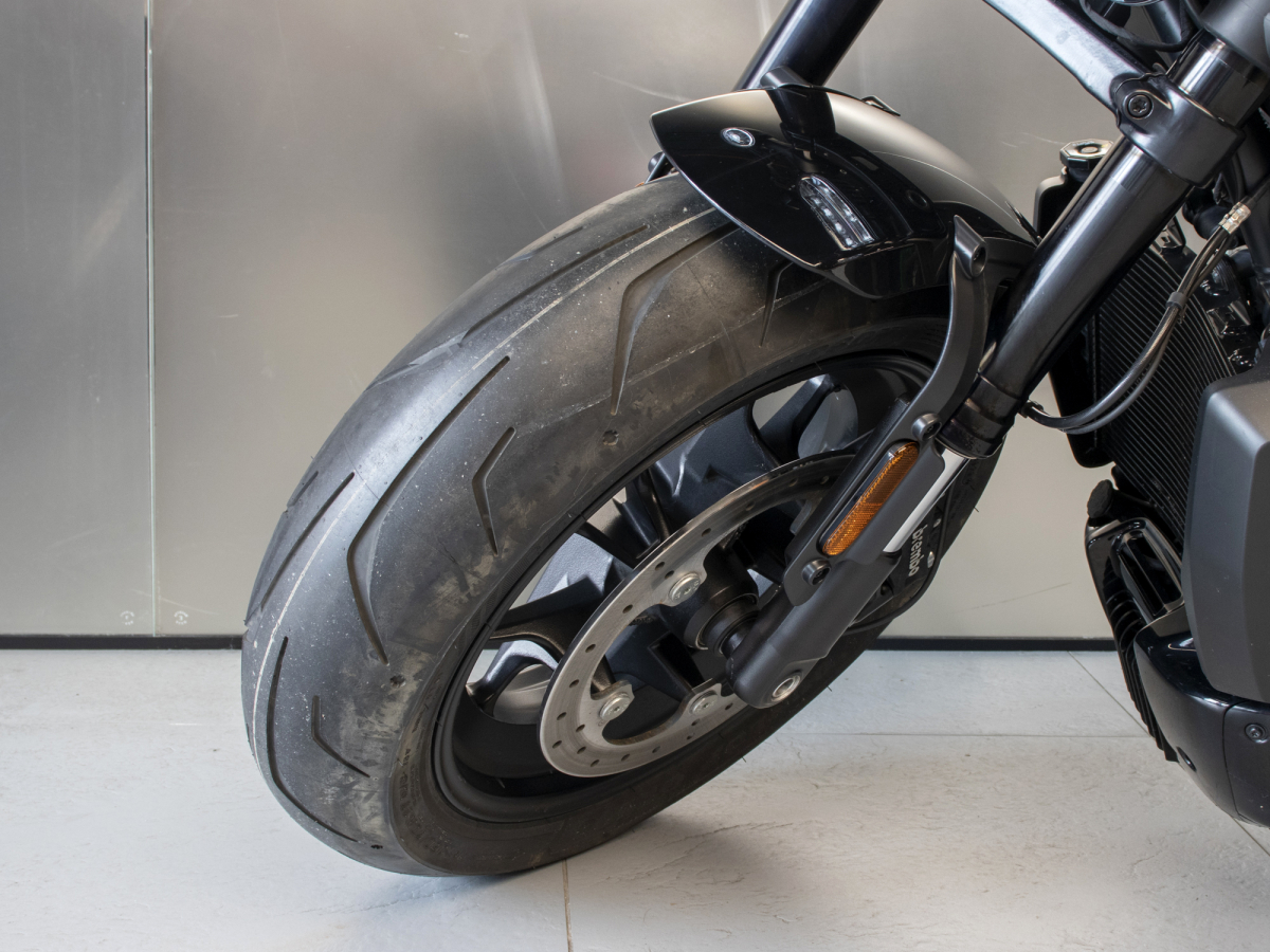 Мотоцикл выделяется агрессивным и мускулистым стилем с низкой посадкой, широкими шинами и минималистичным обтекателем. Легкая рама и передовые технологии, такие как регулируемая подвеска, система ABS и трекшн-контроль, обеспечивают превосходное управление и безопасность.