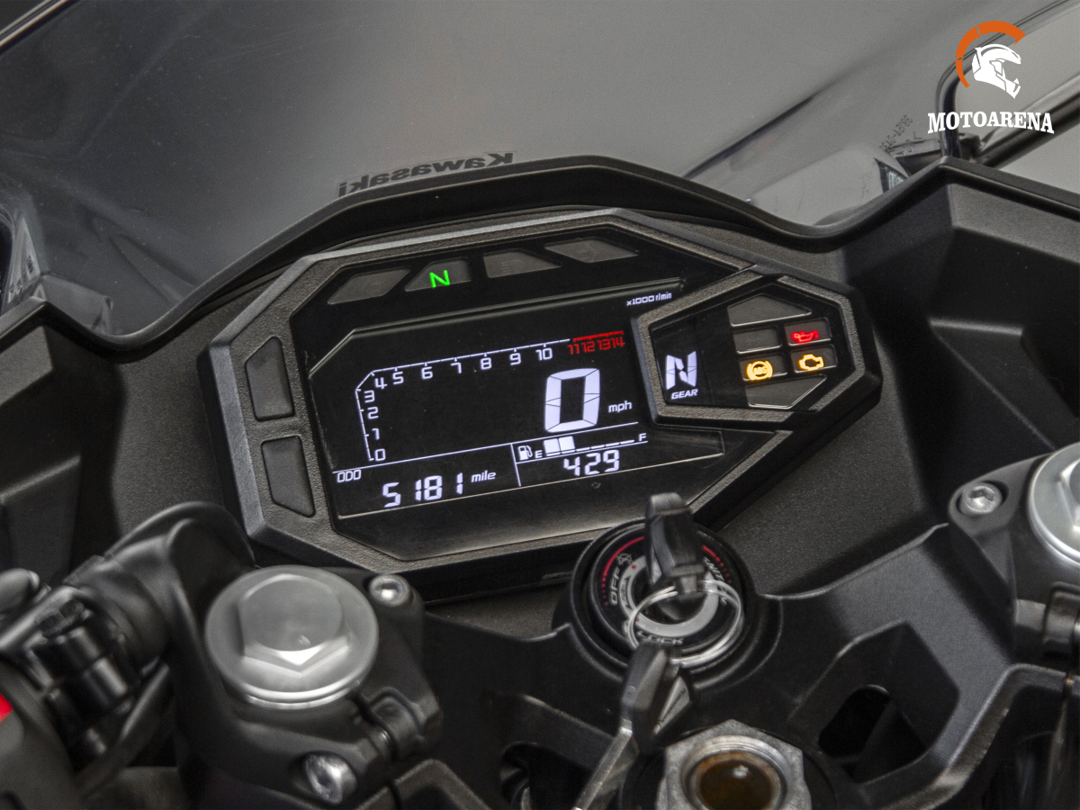 Ninja 500 комплектуется дисковыми тормозами с ABS, что повышает безопасность. Подвеска выполнена с учётом баланса между устойчивостью и мягкостью и обеспечивает стабильность на дороге и комфорт в повседневной езде. Приборная панель — LCD.